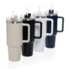 Meet Peakflow, the ultimate 1200 ml tumbler designed for those who need a little extra. Its comfort-grip handle and slim base make it easy to carry and fit into most cup holders, keeping you hydrated on the go. Outside made from durable recycled stainless steel, Peakflow’s double-walled, vacuum-insulated body keeps drinks at the perfect temperature. It features a spill-proof lid with a dual function for sipping or using the included recycled steel straw with a silicone tip. RCS-certified, with 29% recycled content, and BPA-free. Perfectly practical and lower impact, we recommend handwashing.Bulk packed.