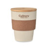 Ühe seinaga lihtne, kuid kena vällimusega kohvitops. Valmistatud ümbertöödeldud plastikust. Topsil on korgist ümbris ja bambusest kaas mugavaks joogi kaasaskandmiseks. Mahutavus 300ml.