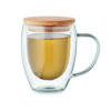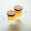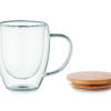 Kahekordse seinaga kuumakindel borosilikaatklaasist kohvitops bambusest kaanega.