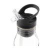 Läbipaistev veepudel RPET-ist. Keerataval korgil on kokkuklapitav suuosa ja suletav joogikõrs, mis võimaldab juues pea sirge hoida. Sel moel saate teel olles sõidu ajal lonksu võtta, hoides samal ajal pilku teel. Pudel on mugavalt ühe käega kaasas kantav. Vastupidav, korduvkasutatav, lekkekindel ja BPA-vaba.