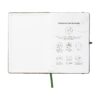Tulemuseks on loodusliku välimusega roheka-pruunika varjundiga kaas. Märkmikul on umbes 96 lehte / 192 lehekülge valget, joonelist, taaskasutatud FSC® MIX sertifikaadiga paberit (70 g/m²). Varustatud pastapliiatsi aasa, elastse sulguri ja siidist järjehoidjaga.
