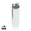 RCS sertfitseeritud RPET materjalist veepudel on lekkekindel ja lukustatav. Pudelil on käepide mugavaks kaasas kandmiseks. Valmistatud 100% RCS sertifitseeritud RPET materjalist (ümbertöödeldud PET pudelid).