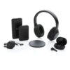 Kokkupandavad juhtmevabad kõrvaklapid, mille korpus on valmistatud RCS-sertifikaadiga taaskasutatud ABS-plastikust. RCS (Recycled Claim Standard) on standard, mis kontrollib ja kinnitab toote taaskasutatud materjalide sisaldust kogu tarneahela vältel. Kokku 65% taaskasutatud materjali kogu eseme kaalust. Juhtmevabad kõrvaklapid kasutavad BT 5.0 ühendust, mis tagab sujuva ühenduse ja pika mängimisaja. Kõrvapealne disain tagab suurepärase helikogemuse. Sisseehitatud 200 mAh liitiumpatarei võimaldab kuni 6-tunnist kasutusaega ning aku on täielikult laetav 1,5 tunniga. Töökaugus kuni 10 meetrit. Mikrofoni ja pick-up funktsiooniga. Ese ja tarvikud on PVC-vabad. Komplekti kuulub PVC-vaba taaskasutatud TPE-materjalist laadimiskaabel.