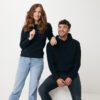 Iqoniq Rila ümbertöödeldud puuvillast pusa 280 g/m2. Kampsunil on kahekihiline kapuuts, pikad varrukad ning 1×1 soonik varrukatel ja allääres. Pusa sisemine külg on mõnusalt pehme.