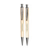 Pöögipuust kirjutuskomplekt: sinise tindiga pastapliiats ja täidetav pliiats koos kolme HB varuga (0,5 mm).