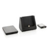 3-ühes juhtmevaba laadija koos toitepanga dokiga, valmistatud RCS-sertifitseeritud ABS-ist ja taaskasutatud PC-st.