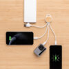 Kompaktne kaablikomplekt, mis on valmistatud sertfitseeritud ümbertöödeldud materjalidest. Sisendab USB C, USB A sisendit, tüüp C, IOS ja mikro USB väljundit. USB-C on kaabel, millele enamik uued seadmed hakkavad üle minema ja selle kaabli abil saad laadida oma seadmeid nii läbi selle sisendi, kui ka läbi klassikalise USB sisendi.