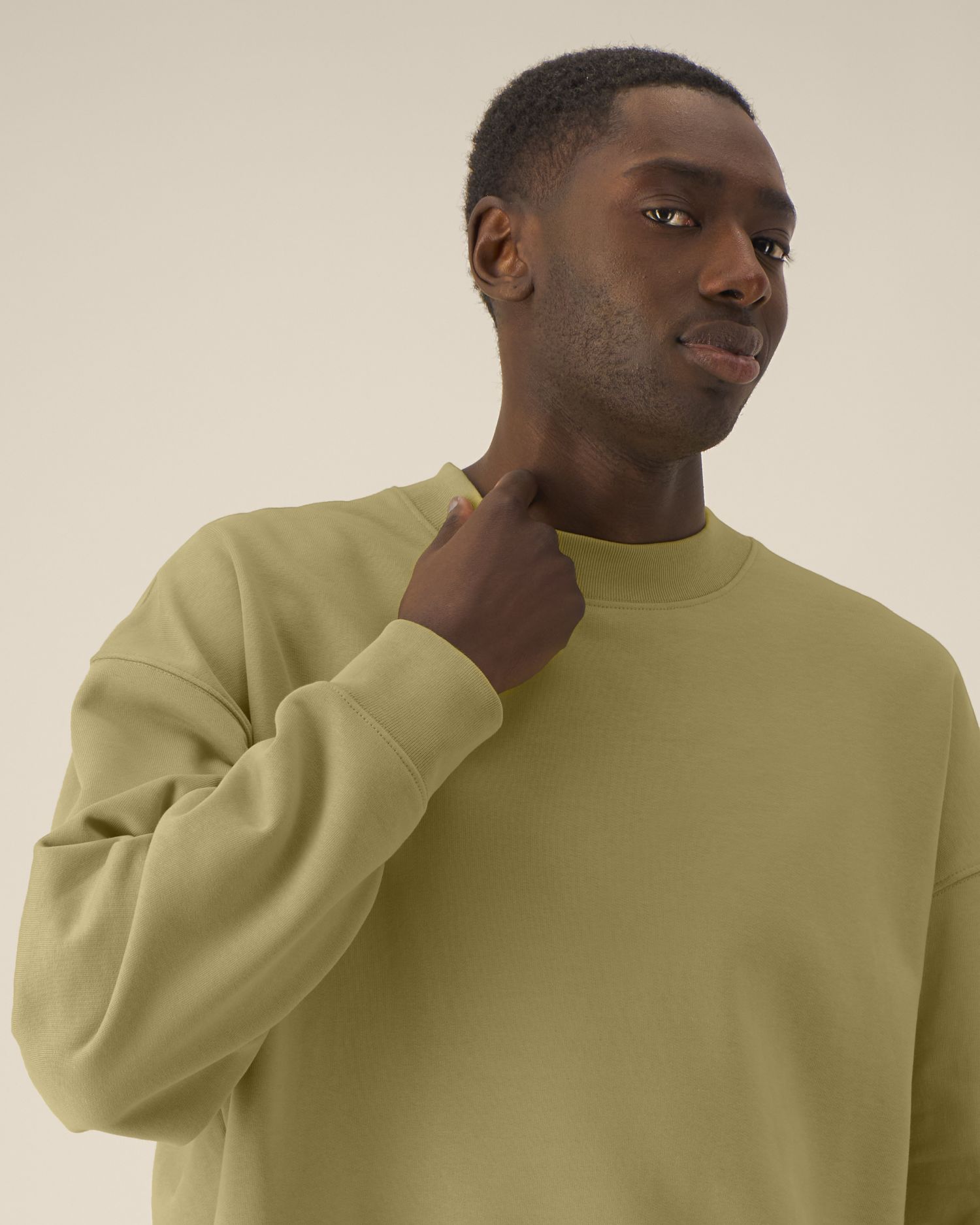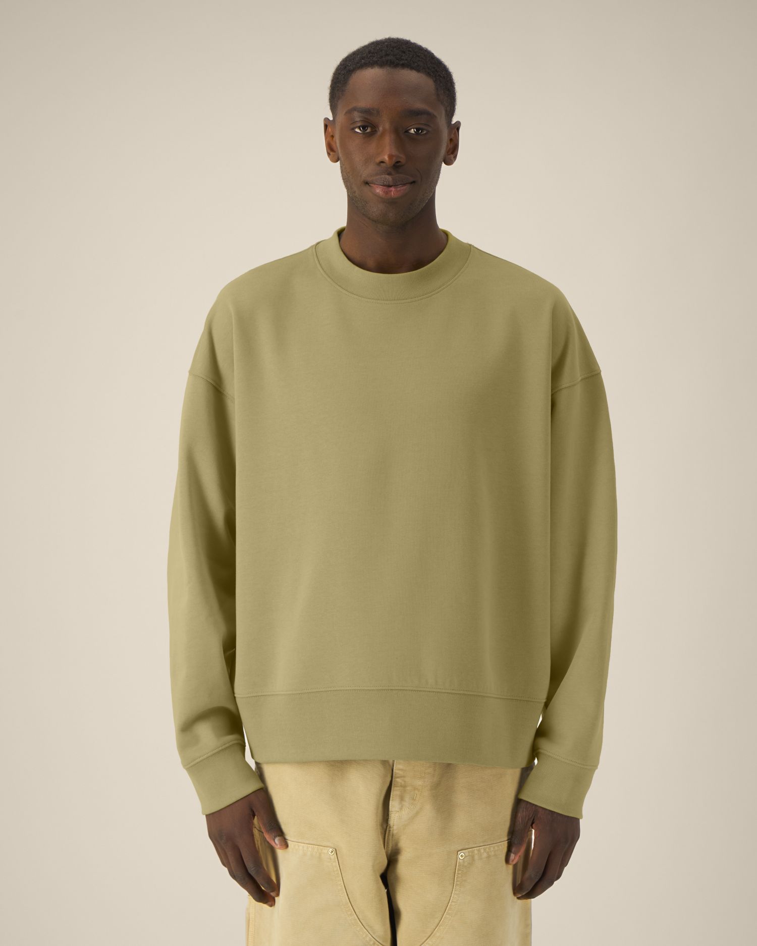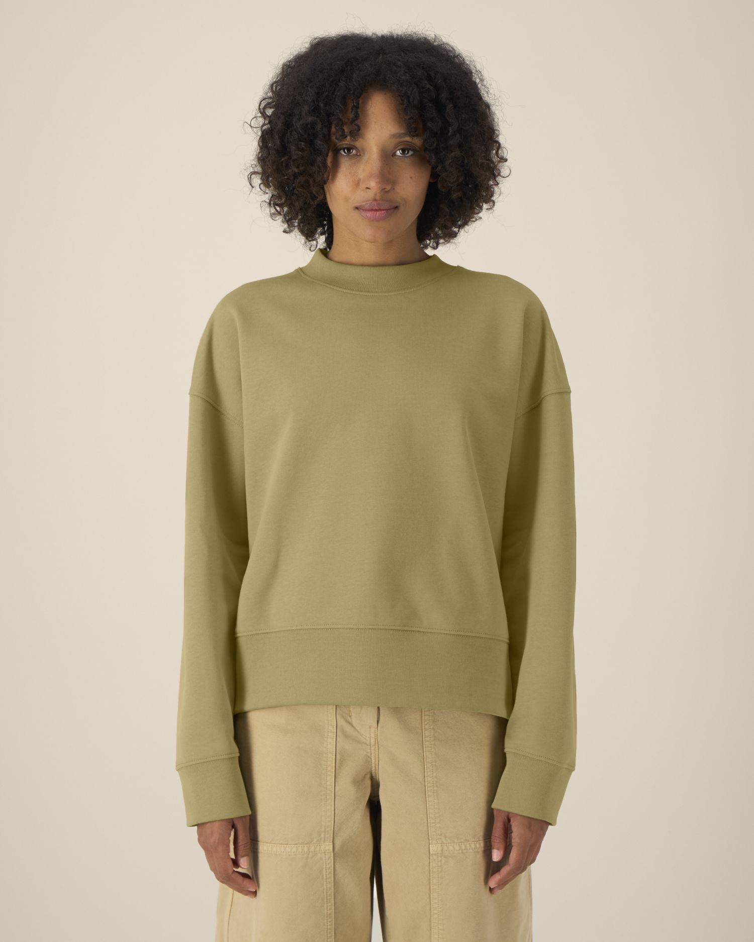 1×1 rib at sleeve cuffs and hem