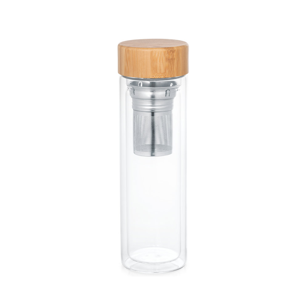 Vastupidavast borosilikaatklaasist kuumakindel teesõelaga pudel.