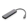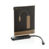 Valmistatud RCS (Recycled Claim Standard) sertifitseeritud taaskäideldud alumiinimumist, ABS, TPE ja PET materjalidest. Varustatud 1 USB A 2.0, 1 USB A 3.0, 1 tüüpi C pordi ja 4K HDMI pordiga. Pesale on integreeritud 10 cm tüüpi C kaabel, mis on valmistatud taaskasutatud RCS sertifikaadiga TPE/PET materjalist. Topelt sisendliidese abil sobib nii tüüp C kui ka USB A arvutitele. Toetab andmeedastust.